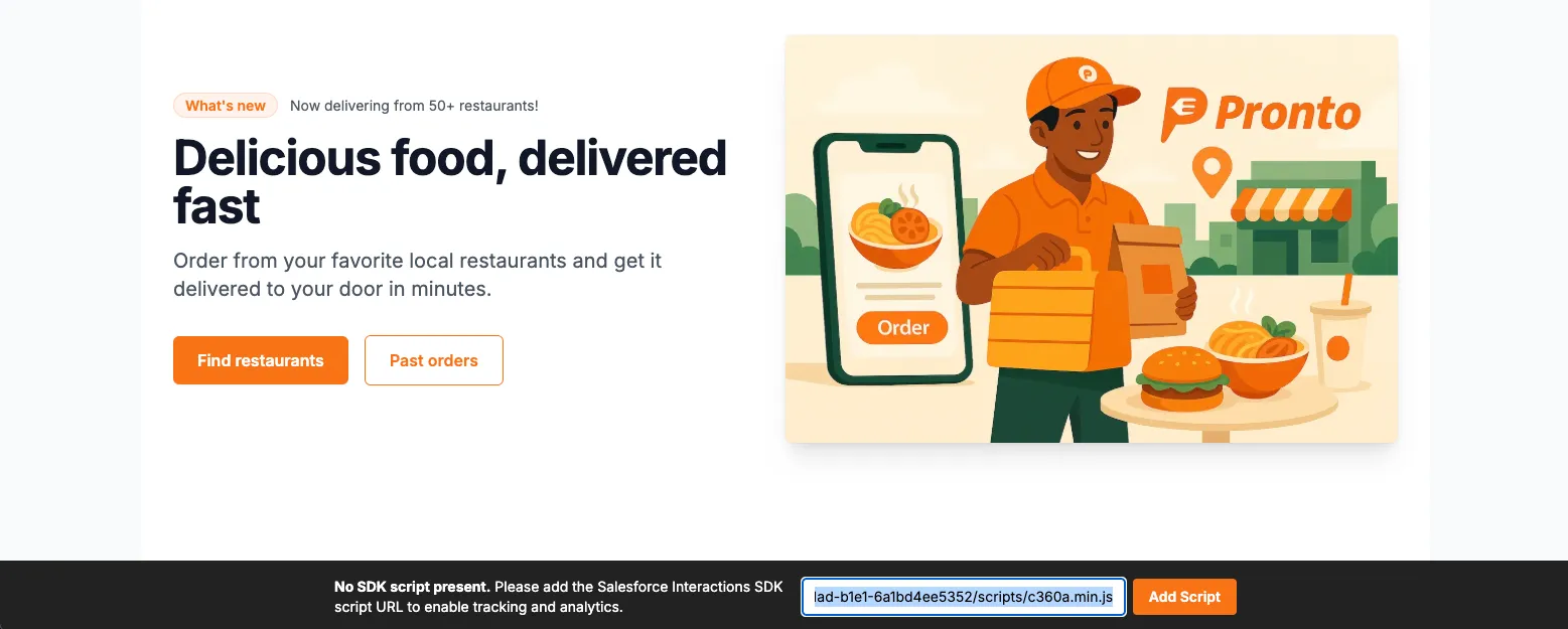 In this Exercise, you’ll integrate the Pronto Web App with the Data Cloud Web SDK to capture real-time interaction data.