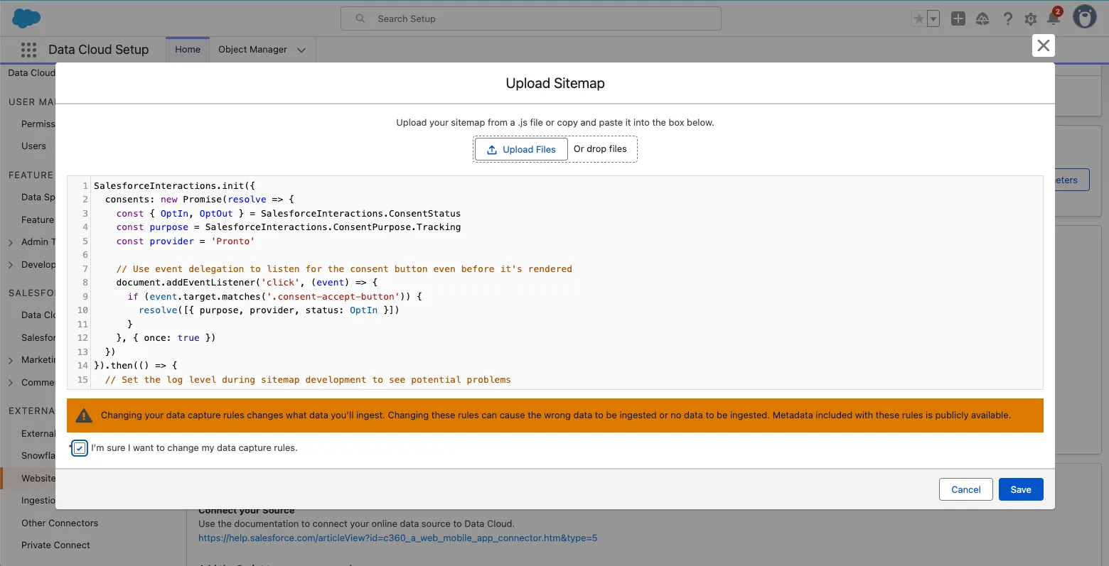 Step 1: Integrate Pronto’s Website with Data Cloud